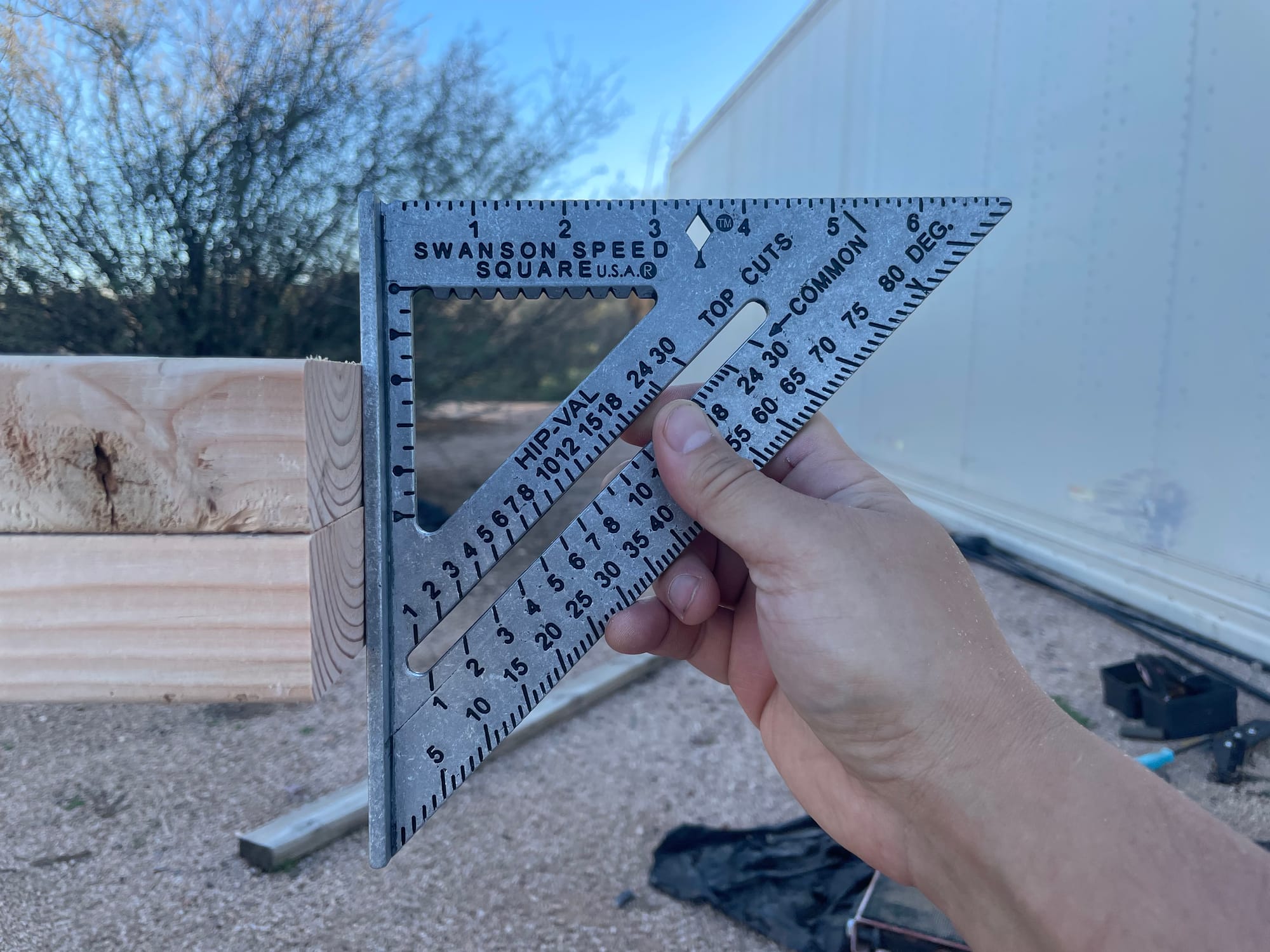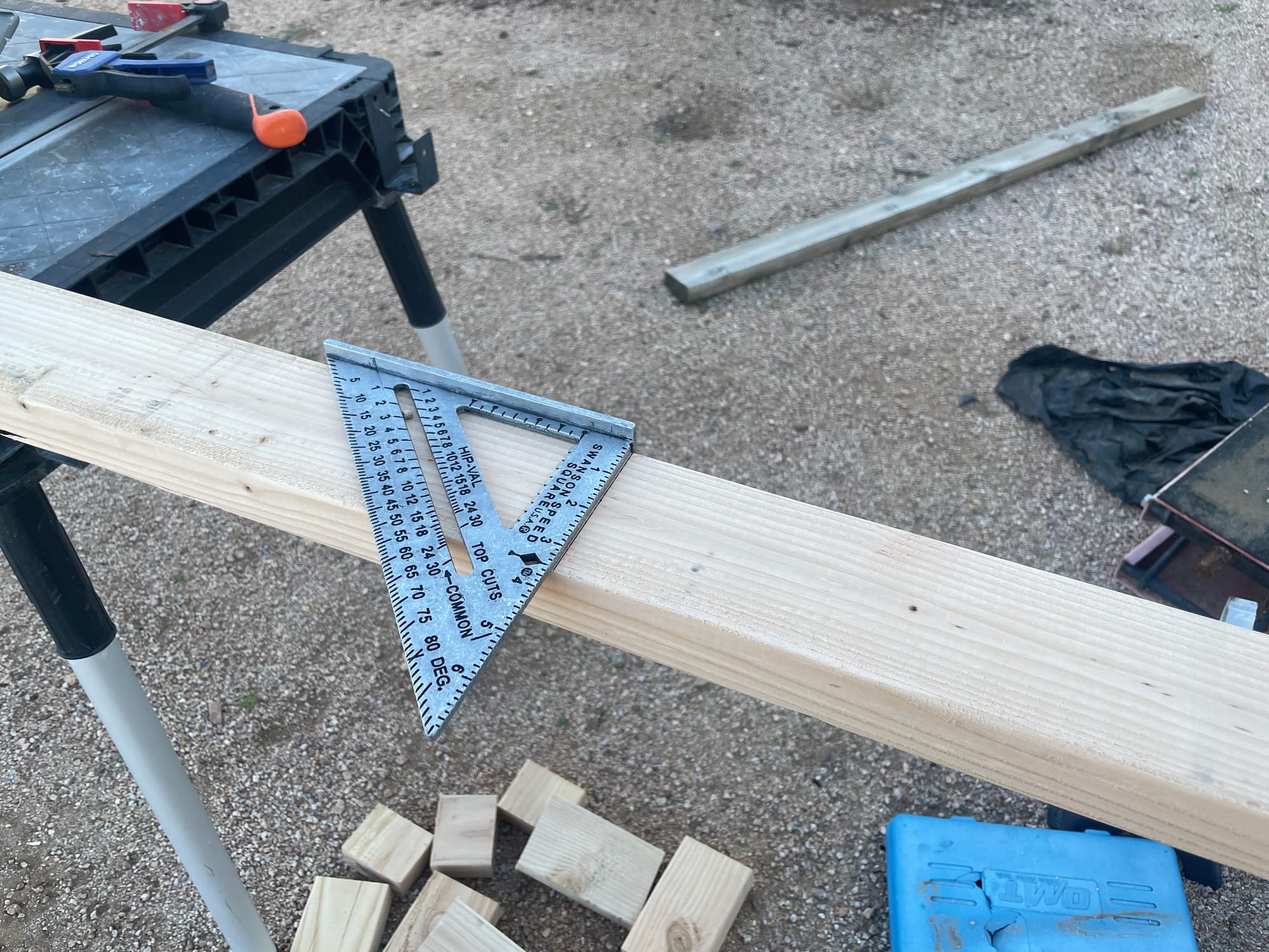 Managed to finish the 2x4 cut list! Something I realized before I started: The speed square can be used for a lot of different things. It can also be used as a guide for a circular saw!