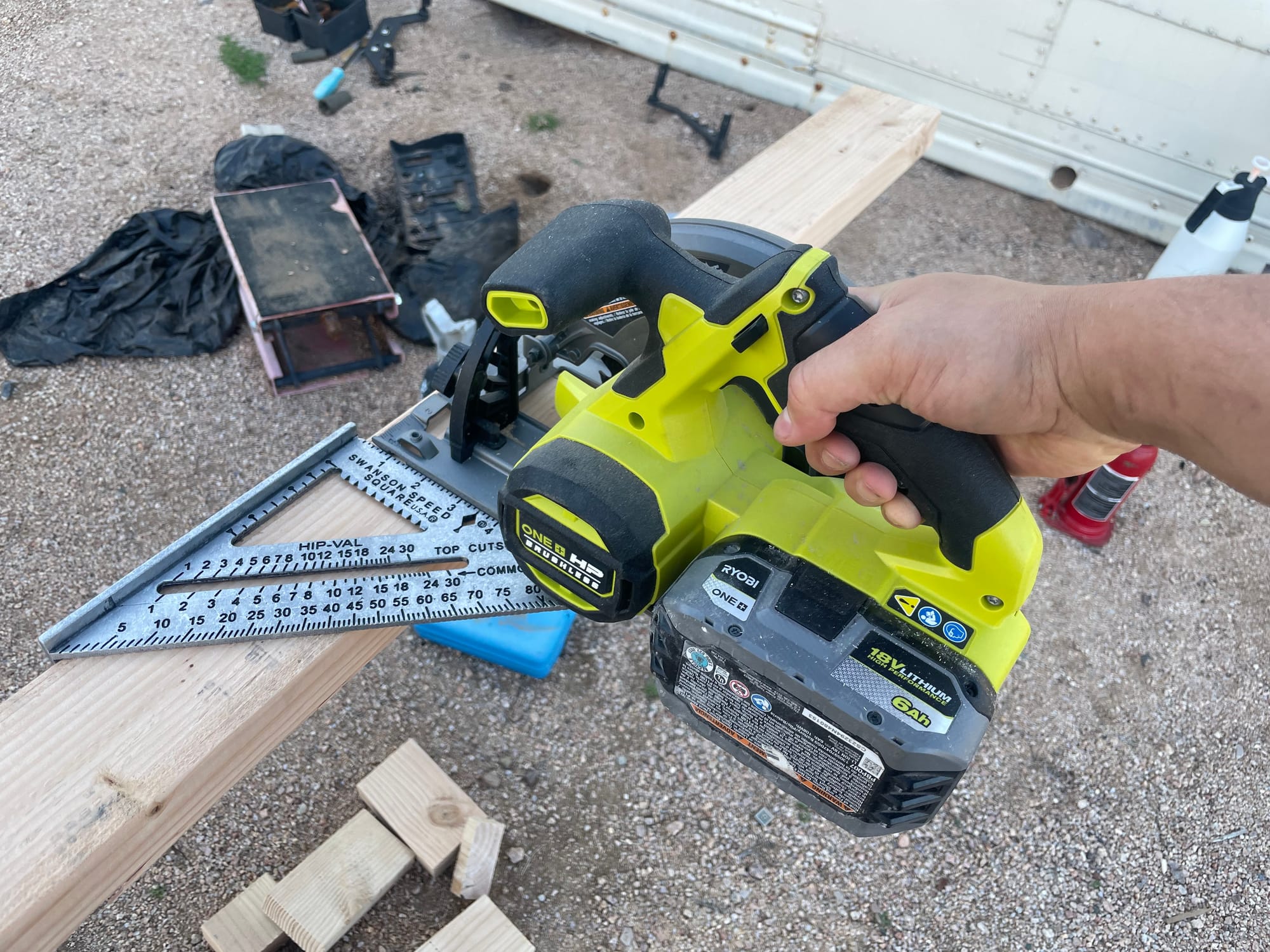 I've tried to freehand cuts before with a circular saw and they go...alright. Realizing I could use a speed square as a guide really made the process faster and more accurate.